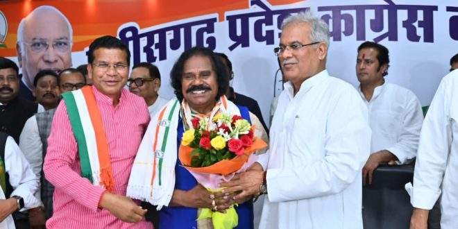 रायपुर । छत्तीसगढ़ में भाजपा के वरिष्ठ नेता और पांच बार सांसद रहे नंदकुमार साय ने कांग्रेस का दामन थाम लिया है. श्रीसाय ने गत रविवार को ही गंभीर आरोप लगाते हुए बीजेपी से इस्तीफा दे दिया था. साय तीन बार लोकसभा तथा दो बार राज्यसभा के सांसद रहे हैं.छत्तीसगढ़ के मुख्यमंत्री भूपेश बघेल ने दिलाई नंद कुमार को कांग्रेस की सदस्यता छत्तीसगढ़ के मुख्यमंत्री भूपेश बघेल ने दिलाई नंदकुमार को कांग्रेस की सदस्यता दिलाई