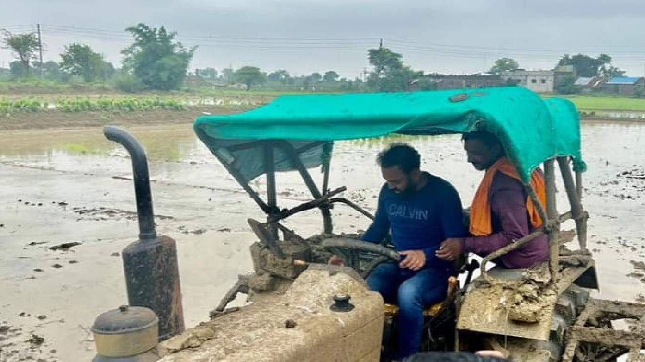 तसेच ट्रॅक्टर चालवून चिखलणी केली.