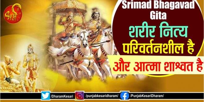 स्वभावत: शरीर नित्य परिवर्तनशील है और आत्मा शाश्वत है। तत्वदृशयों ने चाहे वे निवशेषवादी हों या सगुणवादी, इस निष्कर्ष की स्थापना की है। विष्णु-पुराण में (2.12.38) कहा गया है कि विष्णु तथा उनके धाम स्वयं प्रकाश से प्रकाशित हैं (ज्योतिषि विष्णुर्भुवनानि विष्णु:)। सत तथा असत शब्द आत्मा तथा भौतिक पदार्थ के ही द्योतक हैं। सभी तत्वदृश्यों की यह स्थापना है। यहीं से भगवान द्वारा अज्ञान से मोहग्रस्त जीवों को उपदेश देने का शुभारंभ होता है। (क्रमश
