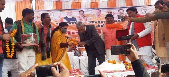 तालग्राम देहात के गांव रसूलाबाद में किसान सम्मेलन के दौरान मुख्य अतिथि गृह राज्य मंत्री लाखन सिंह राजपूत ने किसानों को संबोधित करते हुए बताया कि किसान पाठशाला तथा किसान मेला के माध्यम से 50 हजार किसान पाठशालाएं आयोजित की हैं । जिसमें किसानों को खेती किसानी के बारे में बताया गया, ताकि किसानों की आमदनी को दोगुना किया जा सके। गाय माता को खुला न छोड़े उसे पालें। जिस किसी को किसान को गाय पालनी हो वह चार गाय पाल सकता है। जिसके लिए उन्हें प्रति गाय के हिसाब से नौ सौ रुपये प्रति माह भरण पोषण दिया जाएगा। 60 किलोग्राम नाइट्रोजन के स्थान पर तीन क्विंटल गोबर की खाद खेतों में डालें। गोबर डालने से किसान मित्र केचुआ खेतों को उपजाऊ बनाते हैं। योगी सरकार ने किसानों के ट्यूबवेल के बकाया पर ब्याज माफ कर दिया है। सभी किसान इसका फायदा उठाकर अधिक से अधिक बिल जमा करें। प्रधानमंत्री आवास योजना के तहत प्रदेश में 45 हजार लोगों को आवास दिए गए हैं । प्रदेश में 22 करोड़ 61 लाख लोगों को इज्जतघर दिए गए हैं । 15 करोड़ लोगों को राशन मुफ्त में दिया जा रहा है। विधानसभा चुनाव में किसी के बहकावे में न आएं। भारतीय जनता पार्टी ही किसानों, मजदूरों तथा सभी की हितैषी सरकार है। भारतीय जनता पार्टी ने धारा 370 समाप्त करके कश्मीर को गौरव दिलाया है। राम मंदिर बनाने का रास्ता साफ किया है। काशी विश्वनाथ कारिडोर का काम करके प्रधानमंत्री ने बहुत बड़ा काम करके दिखाया है। इस दौरान विधायक कैलाश राजपूत, विधायक अर्चना पाण्डेय, जिला प्रभारी मुखलाल पाल, नेहा त्रिपाठी, जीतू तिवारी, विपिन द्विवेदी, रामभक्त लोधी, रामबाबू कटियार, हरनाथ सिंह राजपूत, प्रशांत गुप्ता, अंशुल मिश्रा, शाहिद असलम वारसी , राजीव ठाकुर, जीतू प्रजापति, अशोक राजपूत, ईश कुमार सिंह, राजन पटेल, योगेंद्र भदौरिया, मनोज शर्मा रहे।
