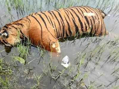 गडचिरोली वन विभागांतर्गत चातगाव वनपरिक्षेत्रातील जंगलात वाघाचा वावर असून, काही जण ठारदेखील झाले आहेत. विशेषत: अमिर्झा बिटात वाघाचे अधूनमधून दर्शन होत असते. अशातच आज सकाळी ७ वाजताच्या सुमारास एका गुराख्याला जंगलात वाघ मृतावस्थेत असल्याचे दिसून आले. त्याने याबाबत गावकऱ्यांना माहिती दिल्यानंतर वनाधिकाऱ्यांना अवगत करण्यात आले. त्यानंतर गडचिरोली वन विभागाचे उपवनसंरक्षक मिलिशदत्त शर्मा व अन्य वनाधिकाऱ्यांनी घटनास्थळ गाठून पाहणी केली.मृत वाघाचे तीन पंजे, तोंडाचा जबडा आणि मिशा गायब होत्या. शिवाय विद्युत प्रवाहाच्या सापळ्यात अडकून वाघाचा मृत्यू झाल्याचे स्पष्ट झाले. यासंदर्भात सहायक वनसंरक्षक संकेत वाठोरे तपास करीत आहेत.विद्युत प्रवाह रानटी डुकरांसाठी सोडला होता की वाघाची शिकार करण्यासाठी, हे तपासाअंती कळेल. मृत वाघाचे वय ३ ते ४ वर्षे असून, विजेच्या धक्क्याने वाघाचा मृत्यू झाल्याचा प्राथमिक निष्कर्ष पशुवैद्यकीय अधिकारी डॉ.आशिष भोयर यांनी काढला आहे, अशी माहिती वनविभागाने आज संध्याकाळी उशिरा काढलेल्या प्रसिद्धीपत्रकाद्वारे दिली आहे.