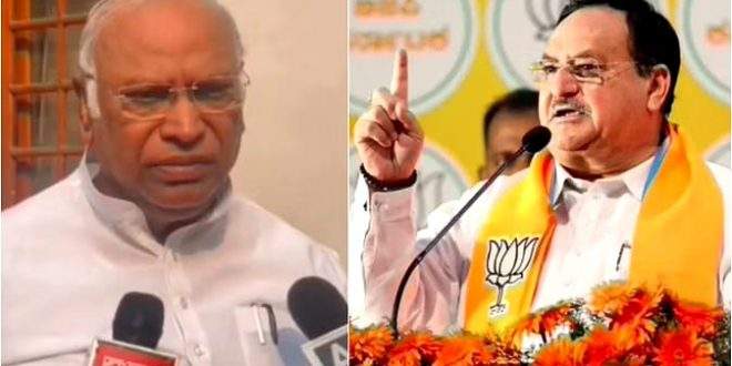 कांग्रेस के राष्ट्रीय अध्यक्ष मल्लिकार्जुन खरगे ने आज भाजपा के चुनावी अभियान पर तीखा हमला बोला। खरगे ने आरोप लगाया कि चुनाव प्रचार के दौरान भाजपा सरकारी मशीनरी का इस्तेमाल कर रही है। इन आरोपों पर बीजेपी अध्यक्ष जेपी नड्डा ने पलटवार किया। नड्डा ने कहा कि कांग्रेस को देश के गरीबों की सेवा करने वाले अधिकारियों और लोक सेवकों से परेशानी है। पार्टी देश की जनता की गरीबी दूर होते नहीं देख सकती।