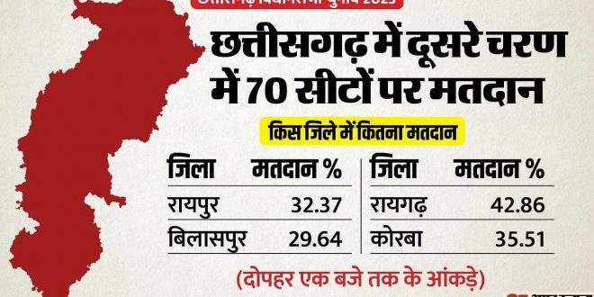 जांजगीर-चांपा में दोपहर एक बजे तक मतदान प्रतिशत