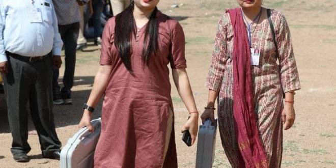 छिंदवाड़ा। कल 19 अप्रैल को हुये वाले लोकसभा चुनाव के देश भर में प्रथम चरण लिए मतदान दलों की रवानगी चल रही थी ।ऐसे में जिला जनसंपर्क विभाग द्वारा जारी एक फोटो बहुत वायरल हो रही है जिसमे एक बड़ी ही स्टाइलिश पोलिंग ऑफीसर की फोटो है । छिंदवाड़ा मतदान दलों की रवानगी के समय की इस फोटो ने लोगों को फिर रीना द्विवेदी और विराज नीमा की याद दिला दी । कत्थई और पीले रंग के सूट में काला चश्मा लगाए यह महिला अधिकारी जिस उमंग और उत्साह से EVM हाथ में लिए मतदान केंद्र के लिए रवाना हो रही है उसे देखकर मतदान कर्मियों के उत्साह का अंदाजा लगाया जा सकता है । अनेक केंद्र में मतदान दल पहुंच चुके हैं । इस विराट आयोजन के लिए रवाना होने वाले मतदान दलों में अनेक रंग भी देखे जा रहे हैं कहीं पर पति-पत्नी साथ जा रहे हैं तो कहीं पर महिलाओं के साथ उनके बच्चे भी हैं ।