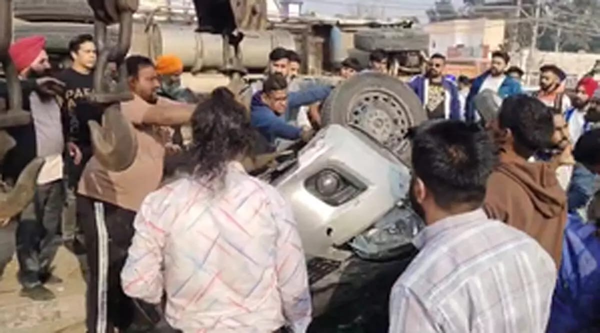 ट्रक पलटने से दो लोगों की दर्दनाक मौत बताया जा रहा है डिवाइडर से दूसरी ओर ट्रक के आने से ये हादसा हुआ है। हादसे की सूचना मिलते ही पुलिस अधिकारी मौके पर पहुंच गए। वहीं पुलिस ने क्रेन की मदद से मृतकों और घायलों को बाहर निकाला। इसके बाद घायलों तुरंत इलाज के लिए एंबुलेंस से अस्पताल पहुंचाया गया। हादसे के बाद आरोपी ट्रक चालक मौके से फरार हो गया। सभी वाहन अमृतसर की ओर जा रहे थे। पुलिस के अनुसार, कार में छह लोग सवार थे। मृतकों के शवों को पोस्टमार्टम के लिए भेज दिया गया है। पुलिस अधिकारी ने बताया कि एक बच्चे का हाथा टूट गया है और एक महिला को चोटे आई हैं। उन्हें इलाज के लिए अस्पताल भेजा गया है। घटनास्थल पर मौजूद एक राहगीर ने बताया कि चार लोगों की मौके पर मौत हो गई। उसने बताया कि मरने वालों में एक बच्चा भी शामिल है। गाड़ी में आगे बैठे दो लोग बच गए।