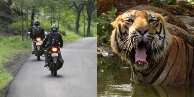 साकोली तालुक्यातील सराटी येथील स्वप्नील रंगारी आणि त्यांची पत्नी कल्याणी हे ५ एप्रिल रोजी रात्री दुचाकीने स्वागवी सराटी येथे जात असताना रस्त्यात अचानक एका वाघाने त्याच्या दुचाकीवर उडी घेतली. मात्र स्वप्नील यांनी न डगमगता दुचाकीचा तोल सावरला आणि वेगाने गाडी पुढे घेतली.त्यामुळे दोघांचा जीव थोडक्यात बचावला