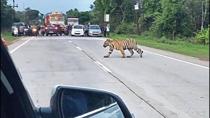 भर दिवसा रस्त्यावर आला वाघ