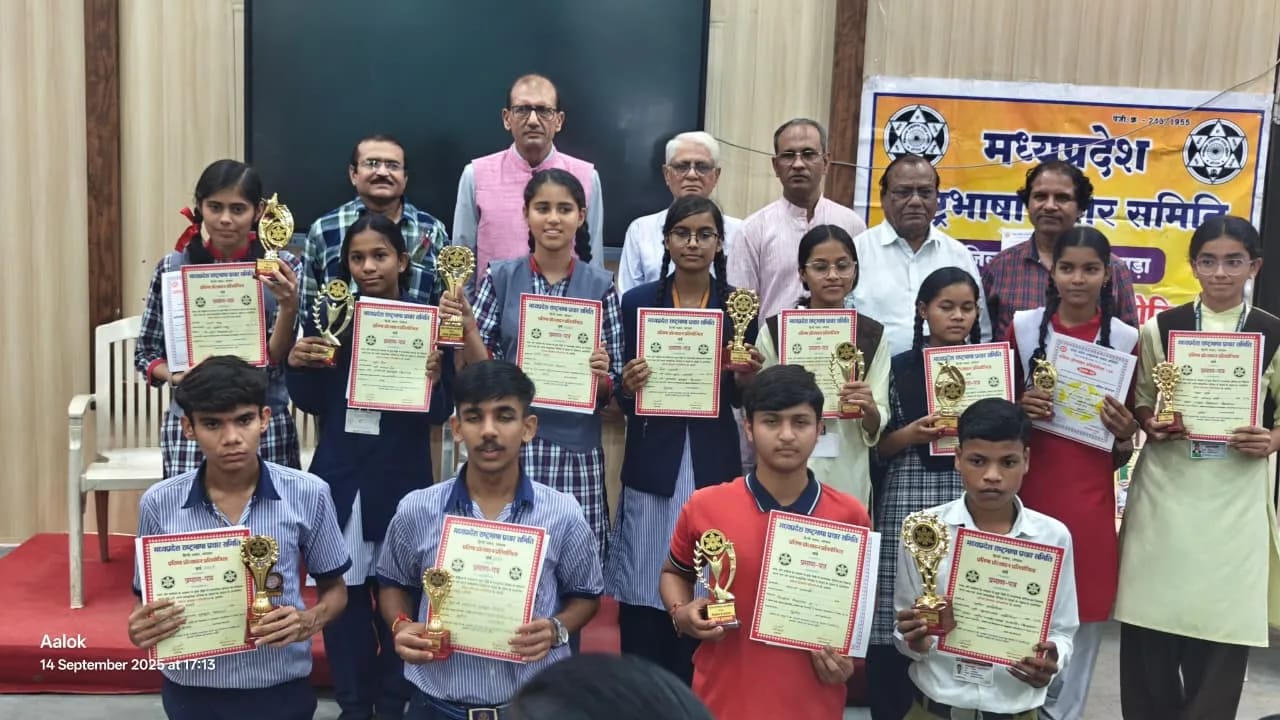 कार्यक्रम में काव्य पाठ प्रतियोगिता में केन्द्रीय विद्यालय क्रमांक-01 की छात्रा कुमारी स्मृति साहू को प्रथम, जगन्नाथ उच्चतर माध्यमिक विद्यालय की छात्रा कुमार त्रिवेणी विश्वकर्मा को द्वितीय व पीएम श्री महारानी लक्ष्मीबाई कन्या उच्चतर माध्यमिक विद्यालय की छात्रा कुमार जानकी परते को तृतीय, भाषण प्रतियोगिता में केन्द्रीय विद्यालय क्रमांक-01 की छात्रा कुमारी गार्गी चड्डा को प्रथम, संतश्री आशाराम गुरूकुल के छात्र आयुष नरवरे को द्वितीय व लक्ष्य जोशी को तृतीय, एकल लोकगीत गायन प्रतियोगिता में शासकीय नवीन जवाहर बालक उच्चतर माध्यमिक विद्यालय के छात्र श्री प्रवीण ककोडिया को प्रथम, संतश्री आशाराम गुरूकुल की छात्रा कुमारी श्रेया प्रजापति व शासकीय उत्कृष्ट विद्यालय की छात्रा कुमारी पहल शर्मा को तृतीय और चित्रांकन से शब्दांकन प्रतियोगिता में संतश्री आशाराम गुरूकुल की छात्रा कुमारी श्रुति जैन को प्रथम, केन्द्रीय विद्यालय क्रमांक-01 के छात्र संजय अवस्थी को द्वितीय व शासकीय उत्कृष्ट विद्यालय की छात्रा कुमारी श्रध्दा सराठे को तृतीय पुरस्कार प्रदान किया गया। इन प्रतियोगिताओं में सर्वश्री रामलाल सराठे रश्मि, ओमप्रकाश नयन, रोहित रूसिया, सुश्री शैफाली शर्मा, सुश्री मोहिता कमलेंदु व सुश्री अनुराधा तिवारी ने निर्णायक की भूमिका निभाई। समिति के कोषाध्यक्ष श्री संजय मोहोड़ ने अंत में आभार व्यक्त किया। कार्यक्रम में सुश्री नीलम सुलखिया, सुश्री कविता भार्गव, ईश्वरी सोनी, रजनीश यादव, यदुराज यादव, सुश्री अक्षिता यादव आदि ने महत्वपूर्ण सहयोग प्रदान किया। इस अवसर पर वरिष्ठ साहित्यकार श्री लक्षमण डेहरिया, अन्य साहित्यकार, शिक्षक-शिक्षिकायें और बड़ी संख्या में छात्र-छात्रायें उपस्थित थीं