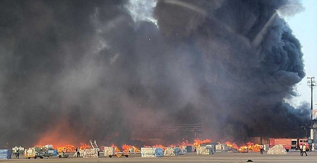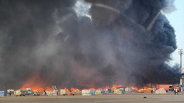हजरत शाह एयरपोर्ट के कार्गो टर्मिनल में आग से पूरा इलाका खाक