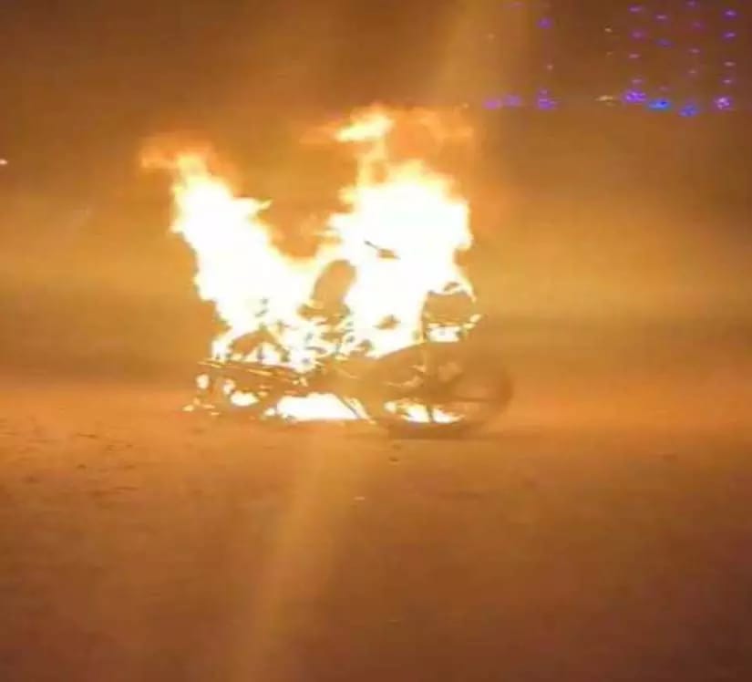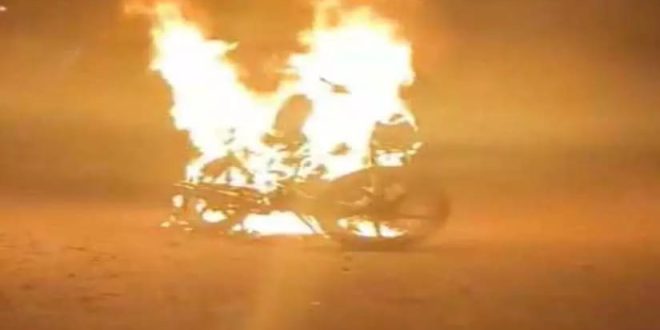शराब के लिए पैसे न देने पर युवक पर हमला, बाइक जलाई गई