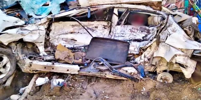 हाइवा और कार की आमने-सामने की टक्कर : चार युवकों की मौत