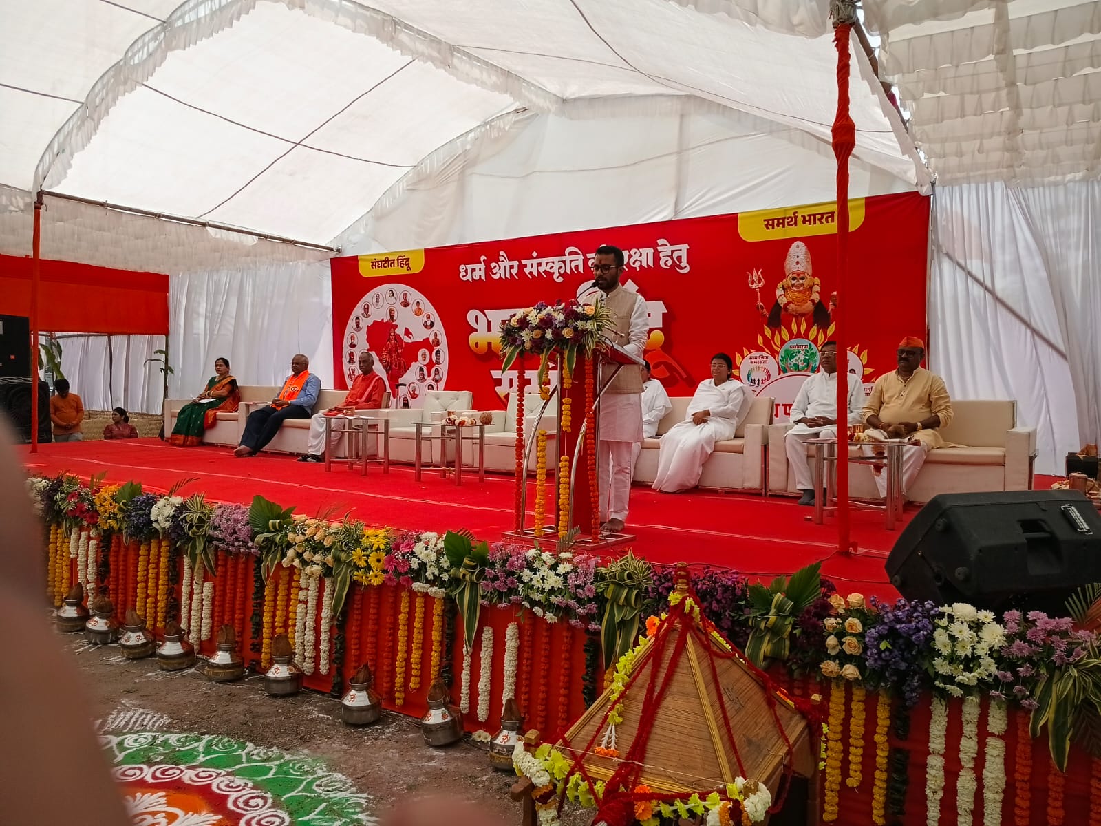 नागपुर। कोराडी के सेवानंद विधालय प्रांगण मे आयोजित हिन्दू धर्म और संस्कृति सम्मेलन का आयोजन हुआ.कार्यक्रम मे राजस्वमंत्री चंद्रशेखर बावनकुले और अन्य गणमान्य मौजूद थे.विश्वहिन्दू परिषद के प्रमुख प्रवक्ता डा गौतम खट्टर ने वर्तमान में हिंदुओं की चेतना के स्तर में गिरावट को लेकर चिंता जताई है। उन्होंने इस बात पर जोर दिया है कि सनातनी अपनी परंपराओं से दूर होकर आडंबरों (जैसे दरगाह और मखबरों मे चादर चढाने और माथा टेकने में भटक रहे हैं, जिससे उनकी स्थिति कमजोर हुई है।उन्होंने आगे कहा कि दरअसल मे मुस्लिम समुदाय दरगाहों और मखवरों मे नहीं जाते परंतु वे नियमित अपने मस्जिदों मे नमाज अदा करने जाते और संगठित रहने का आह्वान करते हैं.