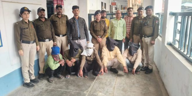 *♦️गिरफ्तार आरोपीगण*- (1) भूरे खान पिता अली हसन उम्र 58 साल नि. रामनगर अलीगढ़ थाना क्वारसी जिला अलीगढ़ (उ.प्र.) (2) देवेन्द्र कुमार पिता पप्पू कुमार उम्र 38 साल नि. भोगापुर भरौल थाना अरांव जिला फिरोजाबाद (उ.प्र.) (3) प्रेमदास उर्फ प्रेमा जाटप पिता रुपराम जाटव उम्र 49 साल नि. नौरंगाबाद मोहल्ला सिकन्द्राराऊ थाना सिकन्द्राराऊ जिला हाथरस (उ.प्र.) (4) संत सिंह पिता रोशनलाल जाटव उम्र 45 साल नि. तान्सपुरा थाना फतेहाबाद जिला आगरा (उ.प्र.)(5) ह्रदेश कुमार पिता किशनलाल उम्र 38 साल नि. श्यामबिहार कालोनी थाना देहात कोतवाली जिला एटा (उ.प्र.) *सभी आरोपीगणों को मान. न्यायालय पेश किया जाता है।*