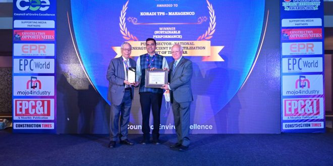 Nagpur. Mahagenco’s Koradi Thermal Power Station has won prestigious national awards for its outstanding performance in the fields of power generation efficiency, fuel consumption, and eco-friendly power generation.